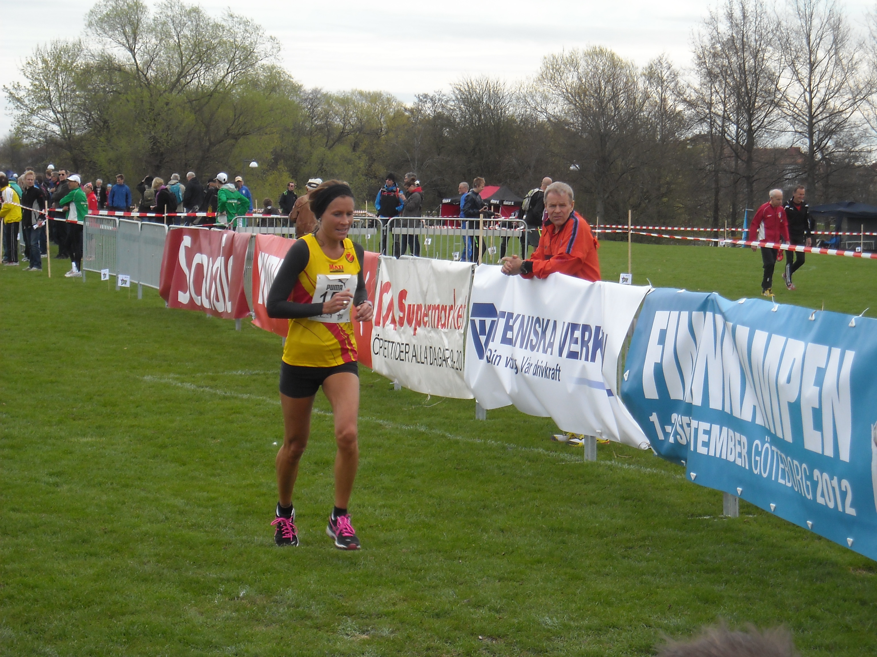 Att jag skulle springa Terräng SM 4000 m hade jag aldrig kunnat drömma om..Men väskan var packad med tävlingskläder & mina löparskor & resan till något som jag aldrig tidigare hade gjort var påbörjad. Först skulle jag tävla i K35 klassen.Jag var mer än nervös än vanligt och började med att gå banan & insåg redan då att den var både kuperad & väldigt lerig efter veckans regnväder. När vi stod i kön för att anmäla oss att vi var på plats insåg jag att dom flesta hade spikskor, men inte jag.