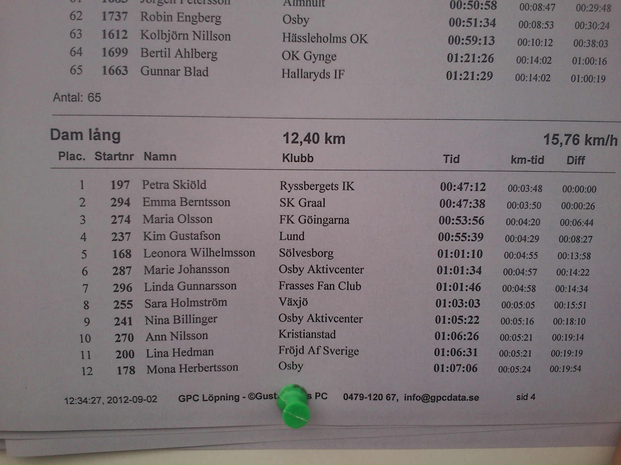Jag kommer i mål som 1;a tjej på tiden 47.12 på distansen 12.4 km i Osby minitons lopp, med en härlig känsla, du gör det igen, PETRA!