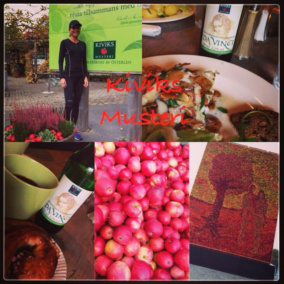 Tänk att jag har sprungit 27 km + 59 km på två dagar & nu skall jag luncha med Susanna & Martin inne på restaurang Kärnhuset. Vilket bemötande, vilken miljö & vilken mat. Jag har absolut inget att klaga på. Där satt jag, glad & fylld av energi på alla tänkbara sätt. Att lunchmötet avslutades med att Kiviks musteri går in som min sponsor, blev jag så glad för.