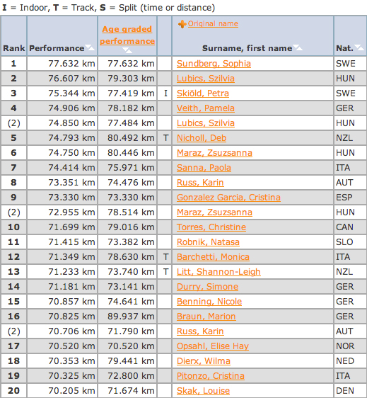 World Ranking 6h women 2013